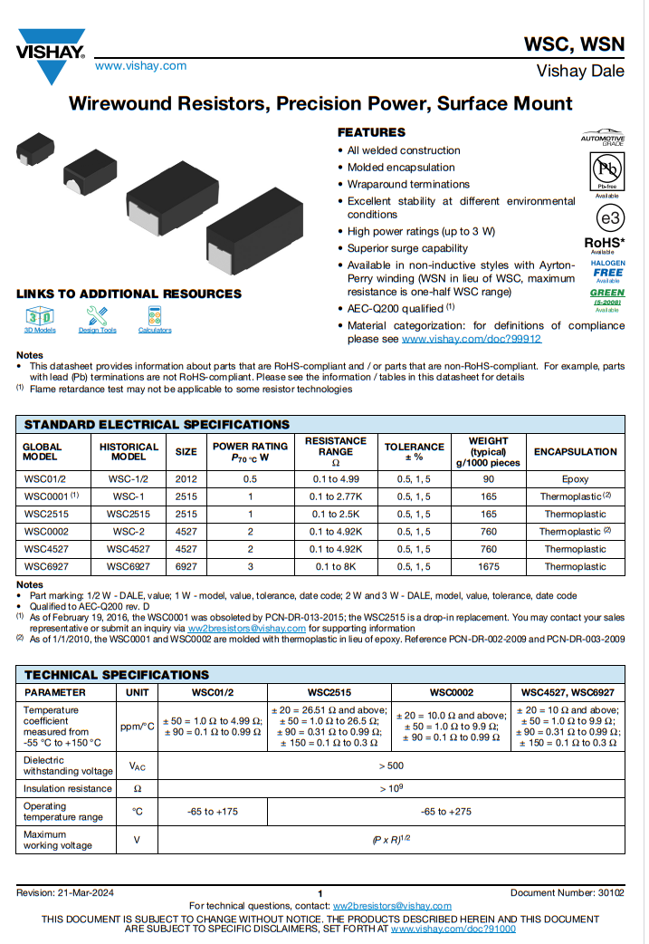 产品种类: 线绕电阻器 - SMD